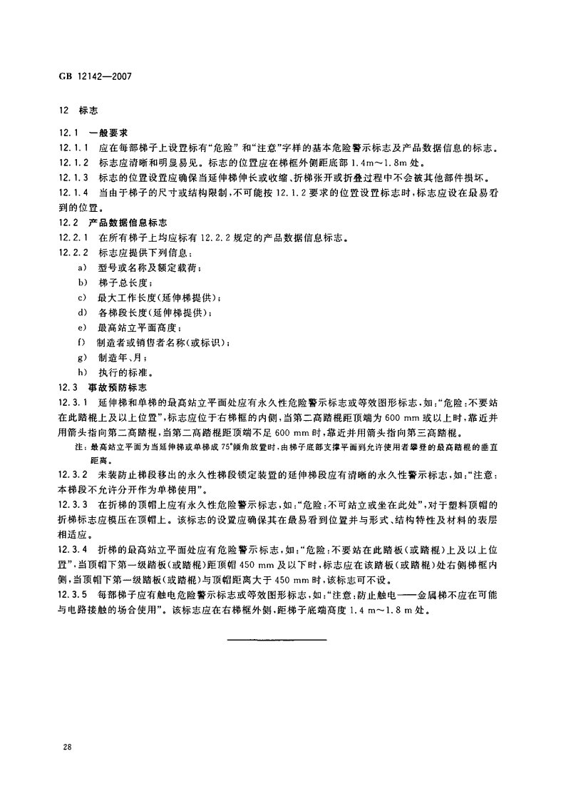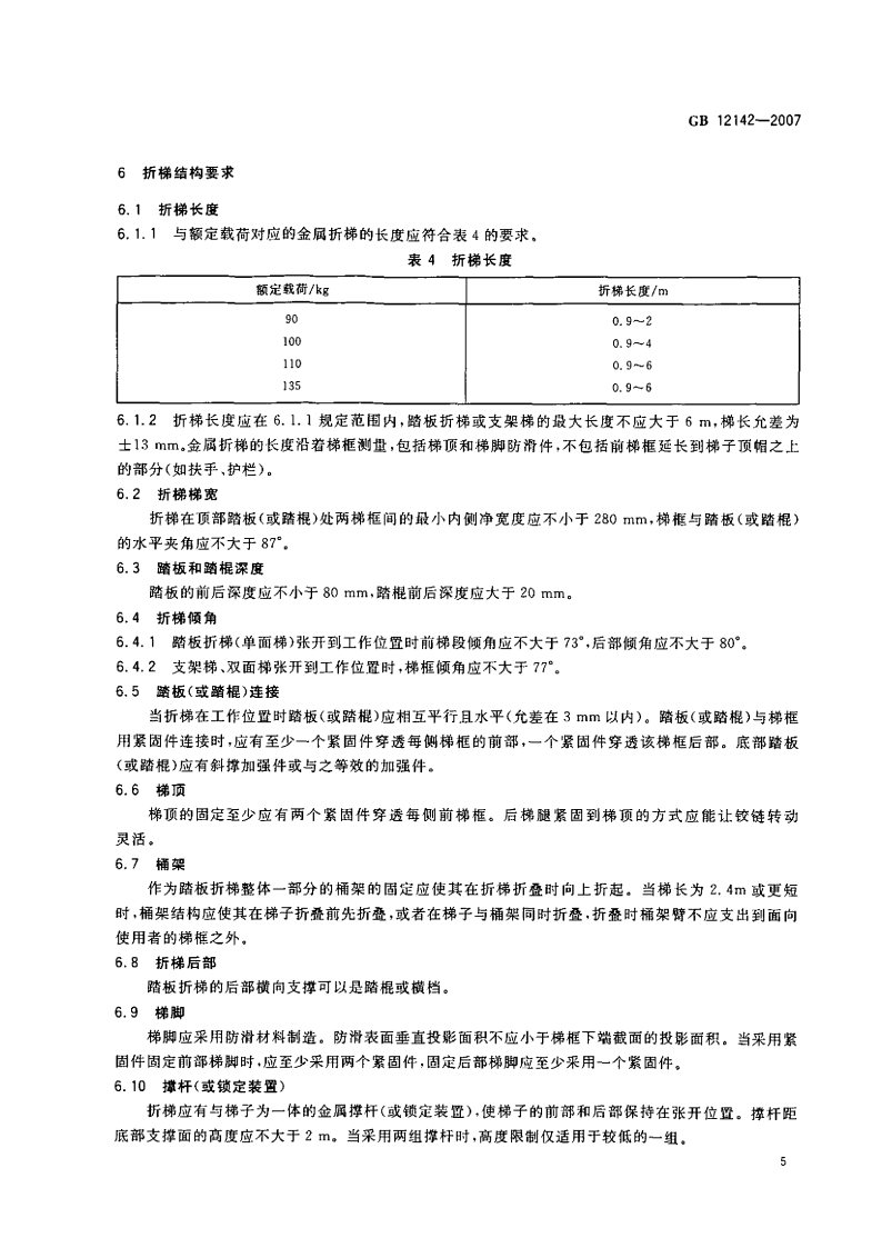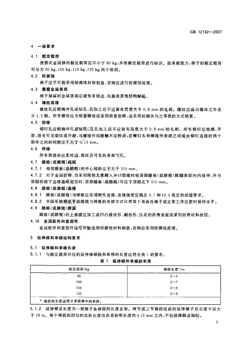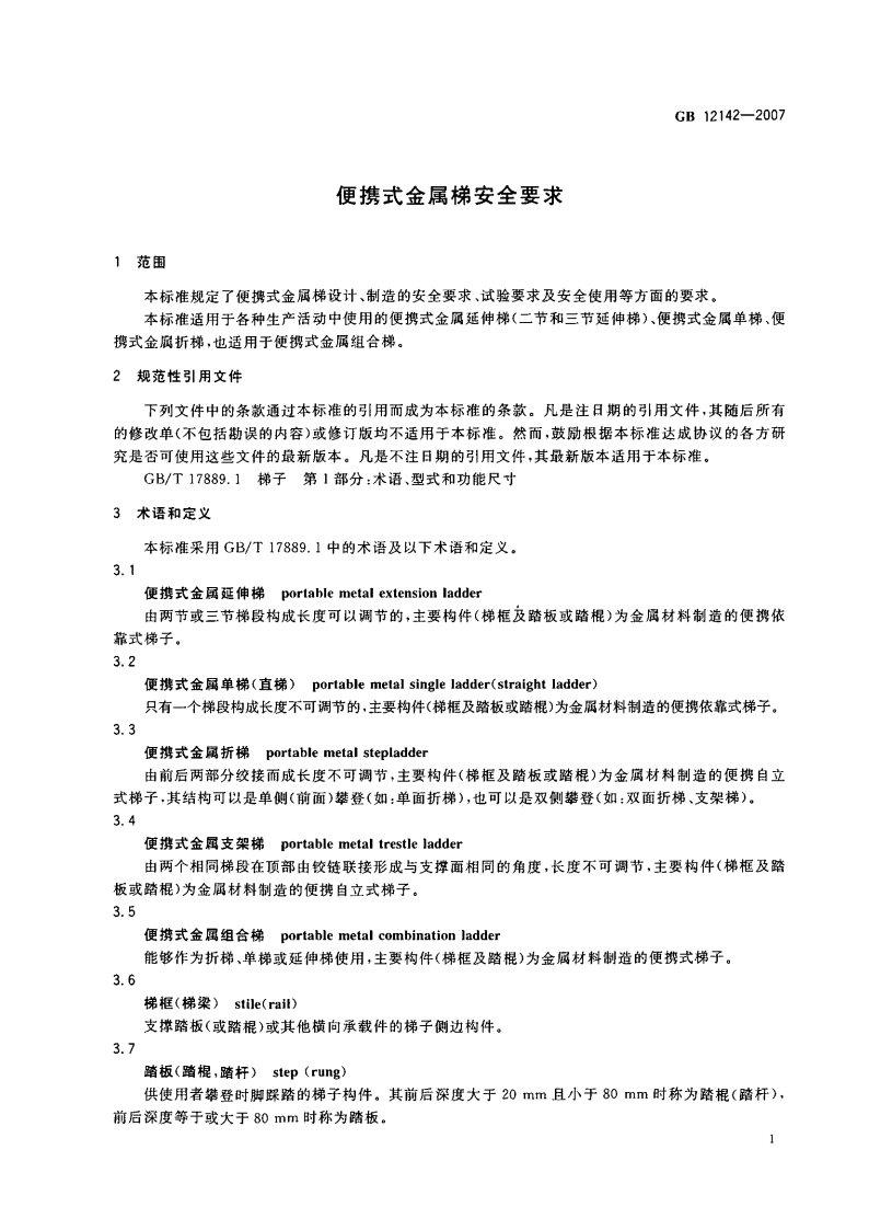 《GB 12142-2007 便攜式金屬梯安全要求》