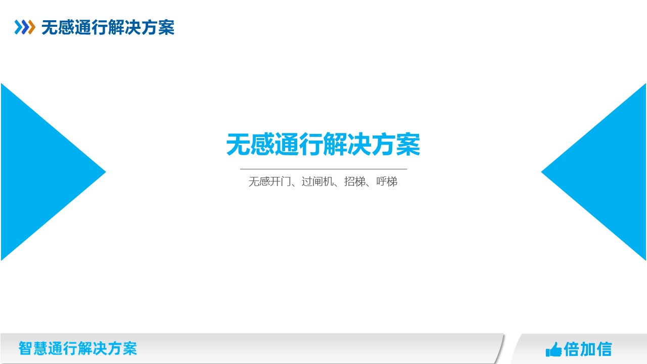 在高檔住宅、寫字樓、企事業單位等場所,開門、過閘機、招梯、乘梯等要求通行更加智能化,無需刷卡、刷碼、不需要主動刷臉識別等,就可以無感通行。